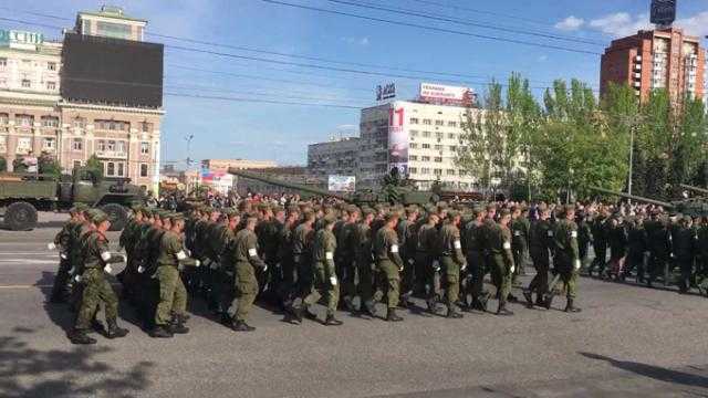 В оккупированном Донецке боевики активно готовятся к "параду победы". Жители города публикуют фотографии и видео репетиций "парада", который боевики намерены провести 9 мая.