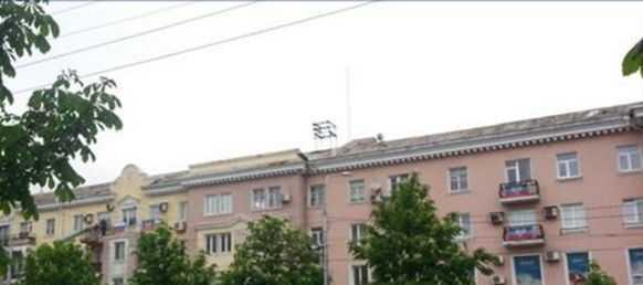 При этом пользователи социальных сетей сообщают, что городские коммунальщики вывешивают флаги незаконной группировки на внешней стороне балконов дончан.