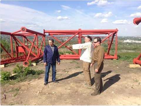 Несколько десятков отдельных шестиметровых конструкций вышки уже привезли на место, отметил советник министра информационной политики Украины в зоне АТО, народный депутат Украины Александр Бригинец. Он объяснил, что сейчас нет смысла привозить еще детали, все остальные материалы будут доставляться по мере монтажа вышки.