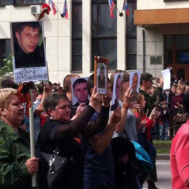 Террористы пригнали на улицы оккупированного города более 40 единиц военной техники, а по центральной улице города колонной прошлись террористы. В центр Донецка на это действо автобусы ехали из соседних городов, например, из Макеевки. Люди держат в руках символику террористической организации «ДНР», сепаратистских движений «Молодая республика» и «Донецкая республика», символику СССР.