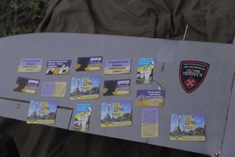 9-го мая на оккупированный Донецк украинская авиаразведка сбросила листовки, содержащие в себе провокационный патриотический смысл. В листовках были надписи «Донецк - это Украина!», «Победили фашистов - победим и рашистив!», «Вернем украинский Донецк - город труженик» и «Захарченко - вор!».