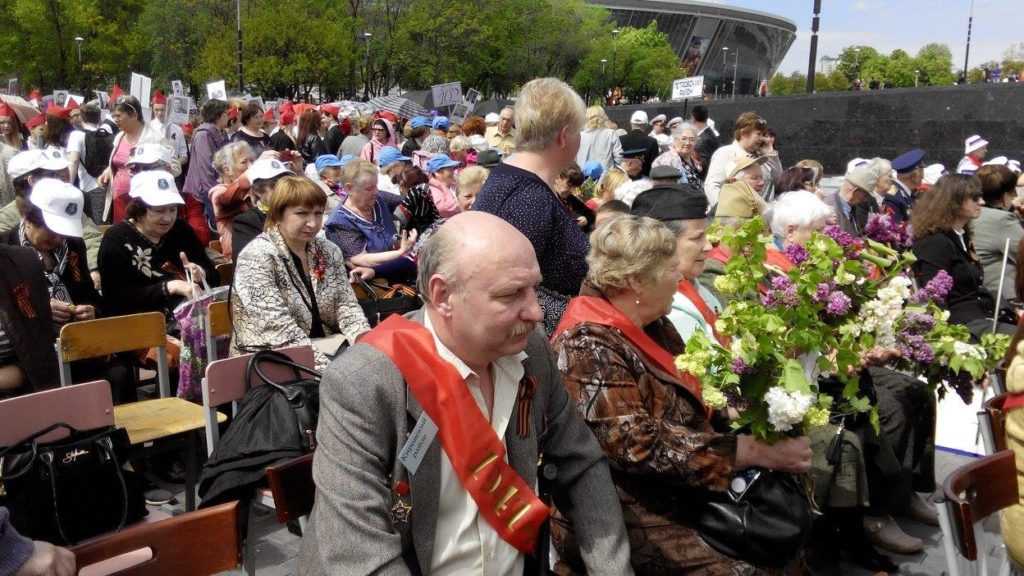 Возьмем, к примеру, Донецк. Ежегодный ритуал 9 мая здесь не меняется, сколько я себя помню. Официальные мероприятия проходят у памятника освободителям Донбасса в парке Ленинского комсомола, где перед трибуной для ветеранов расставляют ряды стульев. При этом каждый раз одно и то же количество стульев остается стабильно занято людьми. Только если в мои школьные годы там действительно сидели старики с боевыми наградами, то сегодня там сидят вместо них какие-то странные люди с непонятными побрякушками, которым на вид от 50 до 80 лет.
