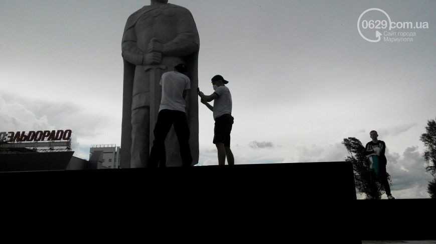 Активисты ГК "Азов" Мариуполь, избавились от последствий вандализма на памятнике Святославу Храброму. Активисты отмыли следы краски, которой неизвестный испачкал памятник.