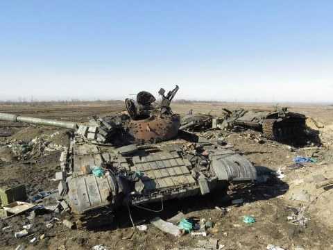Силовики обнаружили в зоне АТО подбитый танк российского производства и противопехотные мины.