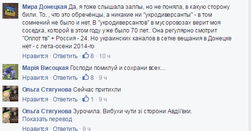 "Я тоже слышала залпы, правда не поняла, в какую сторону", " Господи, помилуй и всех сохрани!", "Притихли", "Сглазила, взрывы слышны со стороны Авдеевки", - делились дончане в социальных сетях.