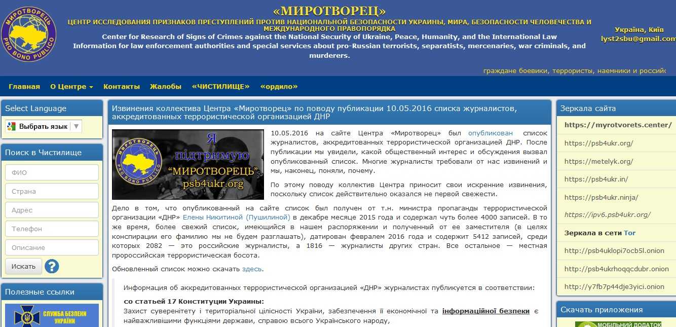 После громкого скандала сайт Центра «Миротворец» обнародовал обновленный список аккредитованных журналистов в так называемой «ДНР».