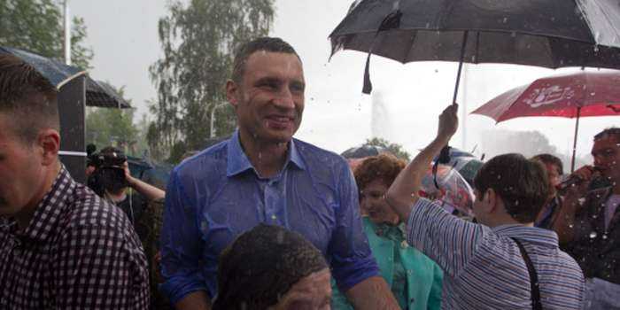 Когда Кличко говорил, отдельные граждане все же пытались дать городскому голове зонтик. Помощники Кличко все время повторяли, что не надо этого делать.