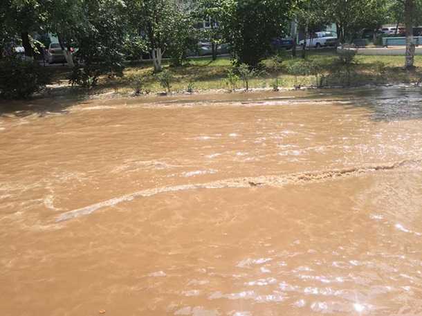 В Дарницком районе столицы прорвало водопровод, в результате чего городские дороги превратились в реки с ржавой водой.
