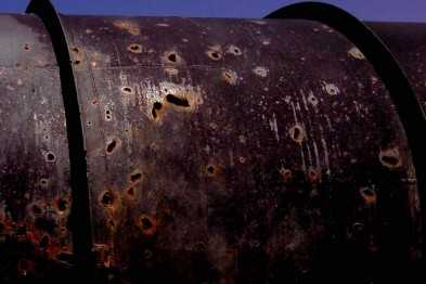 Было обнаружено 35 пробоин размерами примерно от 50 до 100 мм.