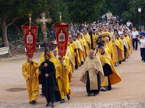 Так, известный Волонтер Мирослав Гай на своей странице в facebook сообщил, что в колонне верующих, которые идут с крестным ходом из Донецка в Киев, появились желто-голубые и красно-черные флаги.