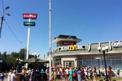 Сегодня, 16 июля, в Донецке возле Южного автовокзала открылся «республиканский» фастфуд «ДонМак», который находится в здании, отжатом у компании «МакДональдс».