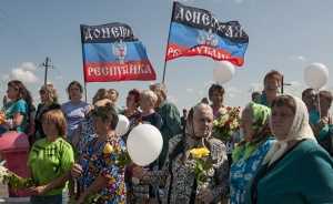"Донецкая народная республика — моя республика" — так написано на транспаранте на случай, если кто-то забыл название самопровозглашенного сепаратистского государства.