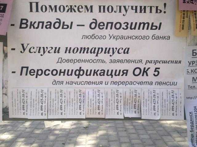 В Донецке становится заметно все больше объявлений с предложением оформить социальные выплаты на свободной территории. Фото соответствующих объявлений регулярно появляются в социальных сетях.