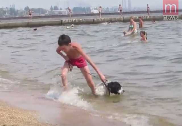 Жителей Мариуполя, отдыхающих на городском пляже, привлекло необычное поведение кокер-спаниеля, который рвался в море. Было видно, что он готов плавать по волнам без перерыва.