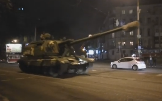 По центру вечернего Киева ехала колонна тяжелой военной техники. В ней насчитали не менее двадцати различных машин.