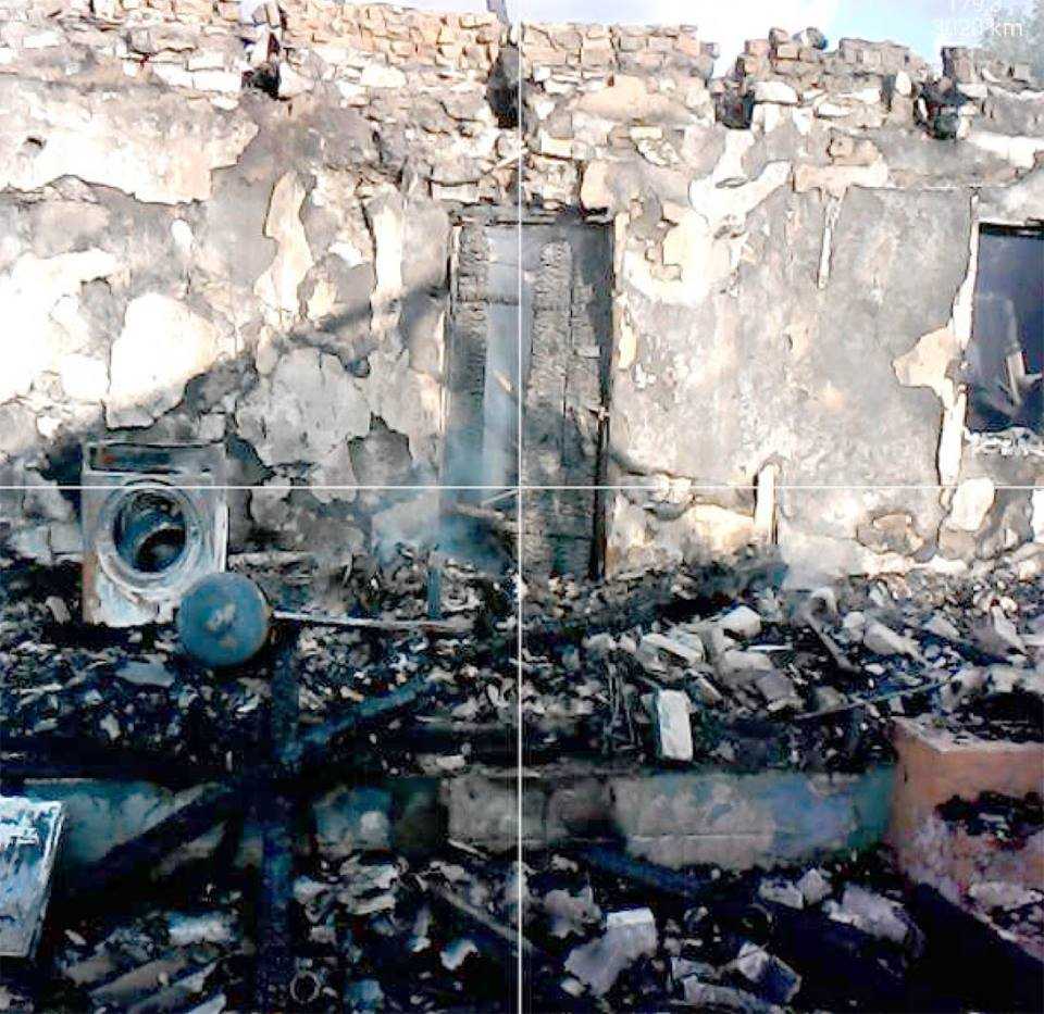 В результате циничного обстрела боевиками населенного пункта Станица Луганская, снаряды перебили газопровод и уничтожили два жилых дома. Разгоревшийся в результате попаданий снарядов пожар привел к полному уничтожению домов.