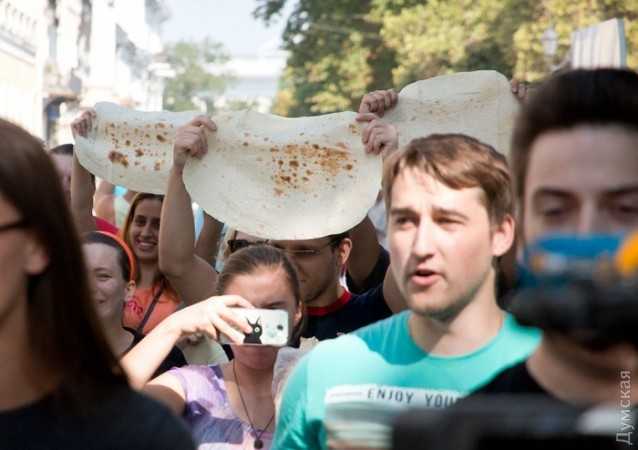 Одесситы с шаурмой и лавашами в руках прошлись от памятника Дюку к зданию горсовета, вызывая улыбку у отдыхающих на Приморском бульваре. Акция прошла позитивно и весело, несмотря на присутствие оппонентов, выступающих за традиционную пищу.