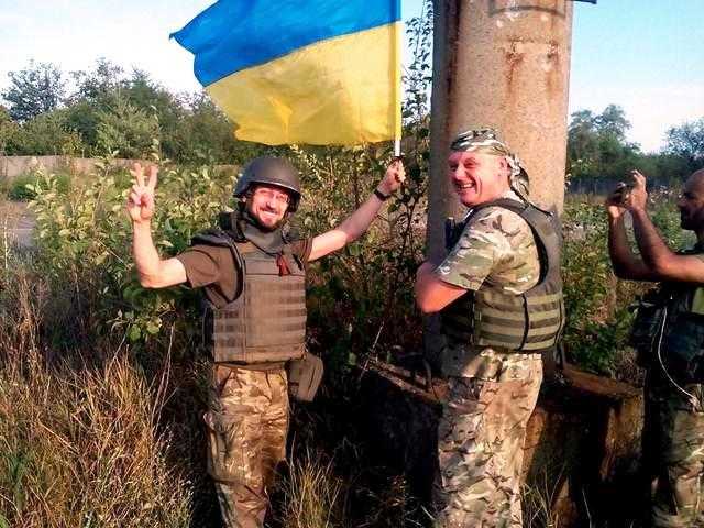 В День Государственного флага Украины украинские военнослужащие подняли государственный флаг над авдеевской промзоной.