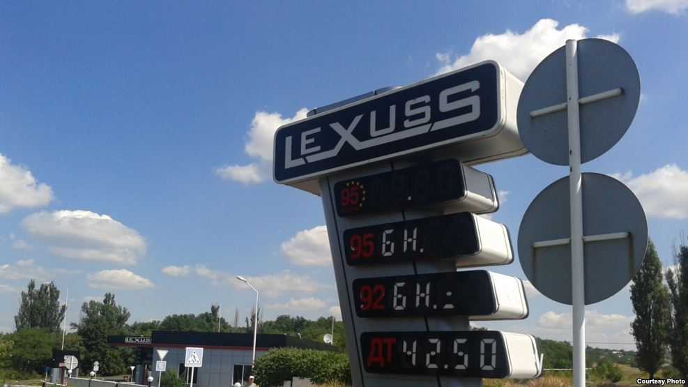На топливных заправках других частных владельцев Pilot, Lexuss, «Скиф» бензина нет, а в «государственном» предприятии бензин есть в «ассортименте». Вот только одно безобразие – «государство» это «ДНР» – никем не признано в мире – даже самими оккупантами. Поэтому бензин возят с территории РФ на машинах – заправщиках с украинскими номерами, иначе границу с Украиной не пересечешь.
