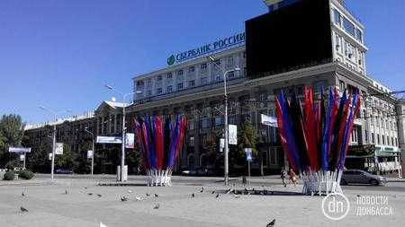 Праздник есть, но ощущения не совсем праздничные. По городу много людей в камуфляже, что совсем не типично для Донецка.