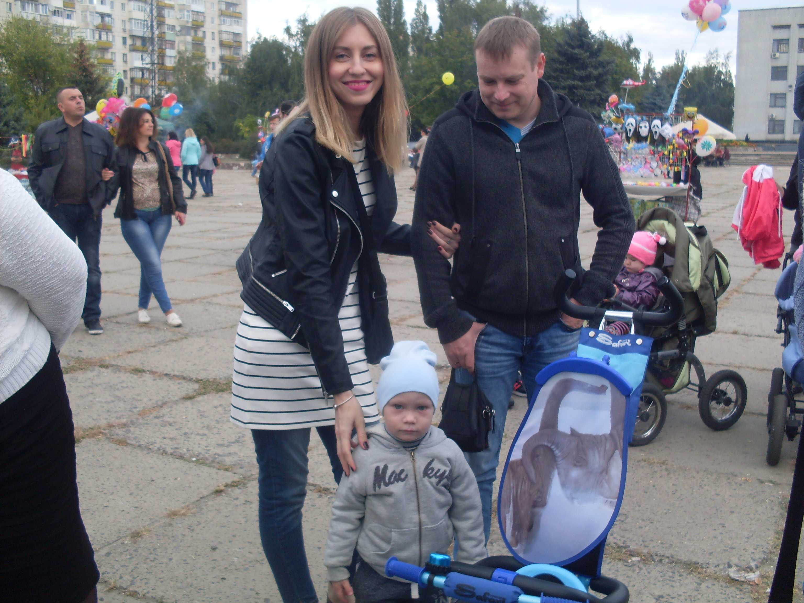 Выставка-ярмарка "Осень урожайная" созывала гостей своими замечательными дарами садов и полей, интерактивная детская театрализованная игровая программа "Щаслива дитина-щаслива родина" в это же время собрала множество людей у сцены Дворца Культуры. А следом за ней на этой же сцене ведущая семейного караоке "Співуча родина - щаслива країна" Анна Бережная определяла лучшего юного певца, предлагая микрофон практически каждому желающему проверить свои вокальные способности. В итоге победительницей песенного конкурса караоке стала девятилетняя София. (на фото – с первым призом - игрой «ТвисТер».), которая лучше всех спела про Антошку, который не хотел копать картошку…