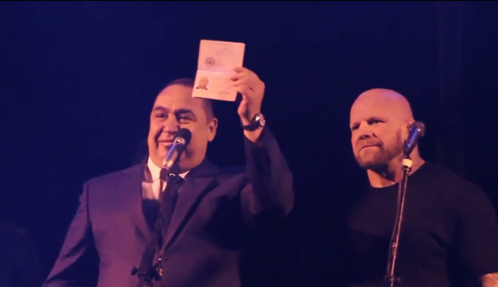 И в тоже самое время так называемый руководитель «ЛНР» Плотницкий, который не устает рассказывать о том, как он ненавидит Запад и видит в каждом агента Белого дома, устраивает показуху с выдачей паспорта Монсону. Да, тому самому Джеффу Монсону, который, к слову сказать, еще и американец.