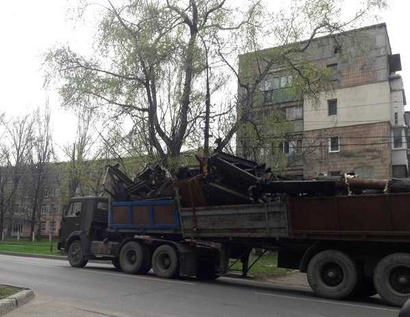 Жители оккупированного Донецка с болью наблюдают, как боевики сдают Донецк в утиль за копейки. По городу снуют грузовики с металлоломом. Уничтожаются заводы, рынки, боевики снимают металлические ворота даже в жилых домах... Красавец-город на окраинах уже превратился в пустырь.