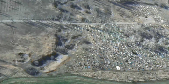 По результатам воздушной разведки, активистам удалось зафиксировать, как боевики любят обустраиваться у кладбища.
