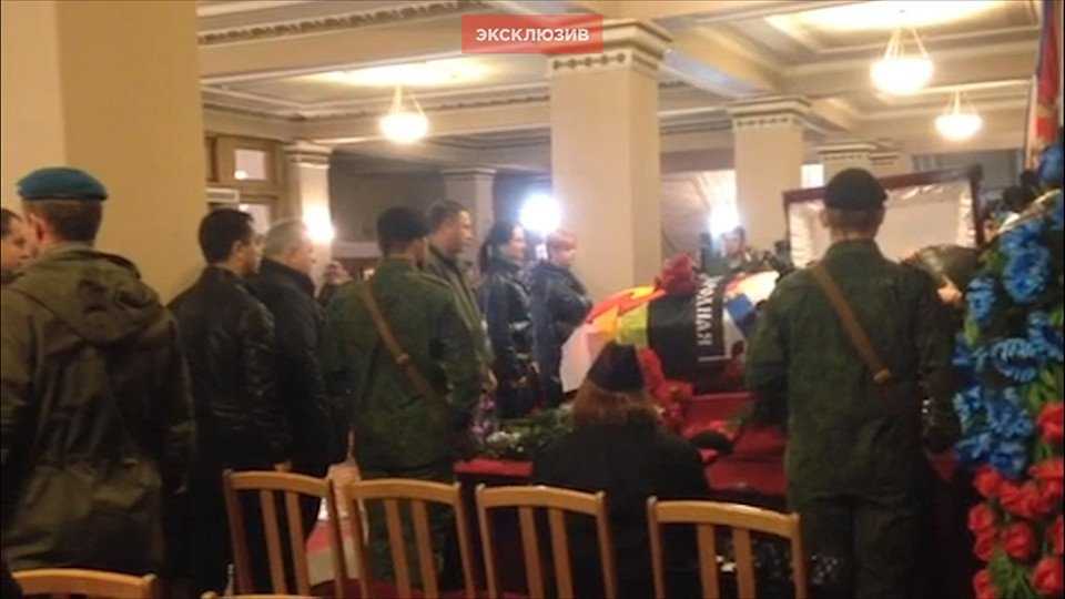 Церемония проходит в театре оперы и балета. Отмечается, что при входе установлены металлические рамки, а всем пришедшим необходимо сдать оружие. Безопасность тех, кто пришел на похороны, обеспечивает "ГСО". В театре находится открытый гроб с телом Моторолы, покрытый знаменем батальона "Спарта".