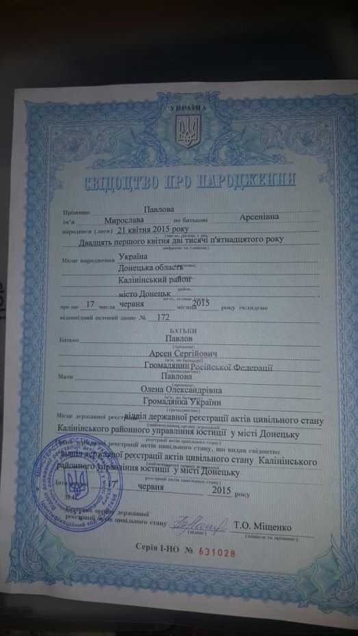 Вот так вот, "Моторола" воевал с Украиной,не признавал Украину и ее Законы , а дочку зарегистрировал по "укроповским" Законам,сделав ей "фашистский аусвайс") ....