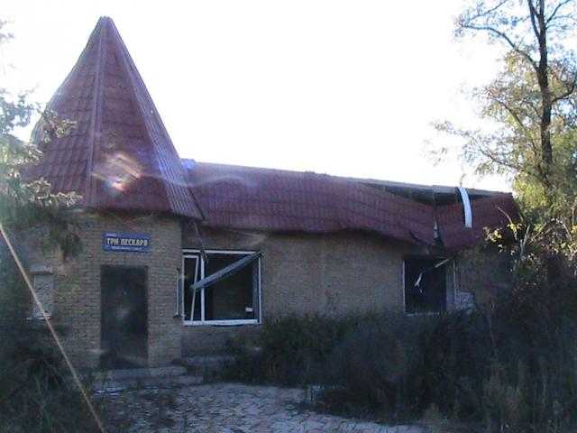 Кафе под названием «Три пескаря», расположенное на выезде из Донецка, превратилось в руины.