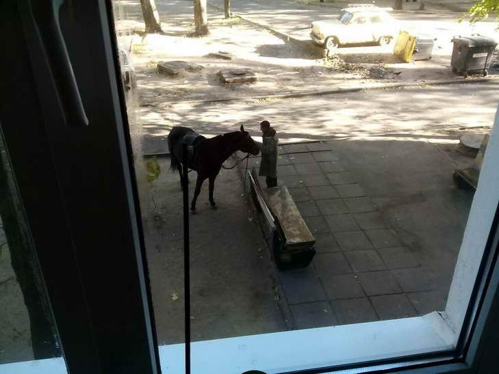 "Хто замовляв таксі на Дубровку?". Світлина з конем та його господарем, що стоять біля під’їзду звичайної запорізької багатоповерхівки розважила користувачів спільноти Типове Запоріжжя.