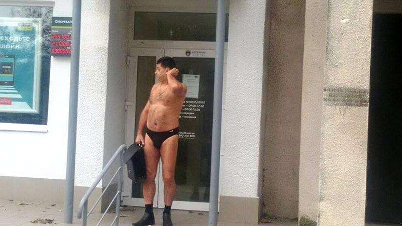 В Одессе произошел курьезный случай. Возле одного из банковских отделений заметили полуголого мужчину.