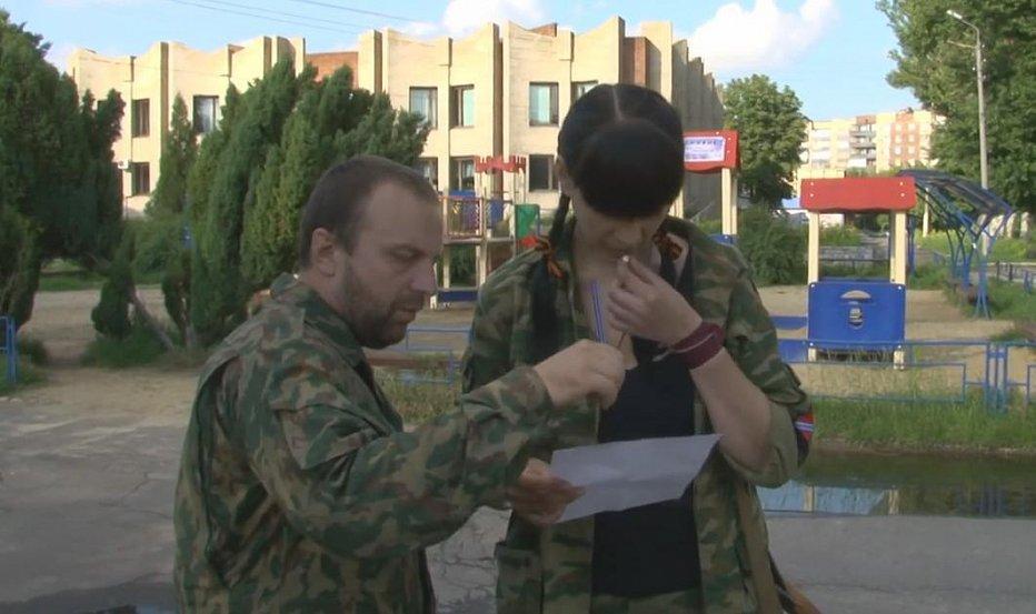 На опубликованных кадрах жена недавно убитого боевика Моторолы читает с листка записанную ранее "сводку" в страшных преступлениях "украинской хунты". При этом режиссер прямо по ходу "репетиции" вносит в будущий спектакль свои правки и поясняет, как правильно говорить на камеру.