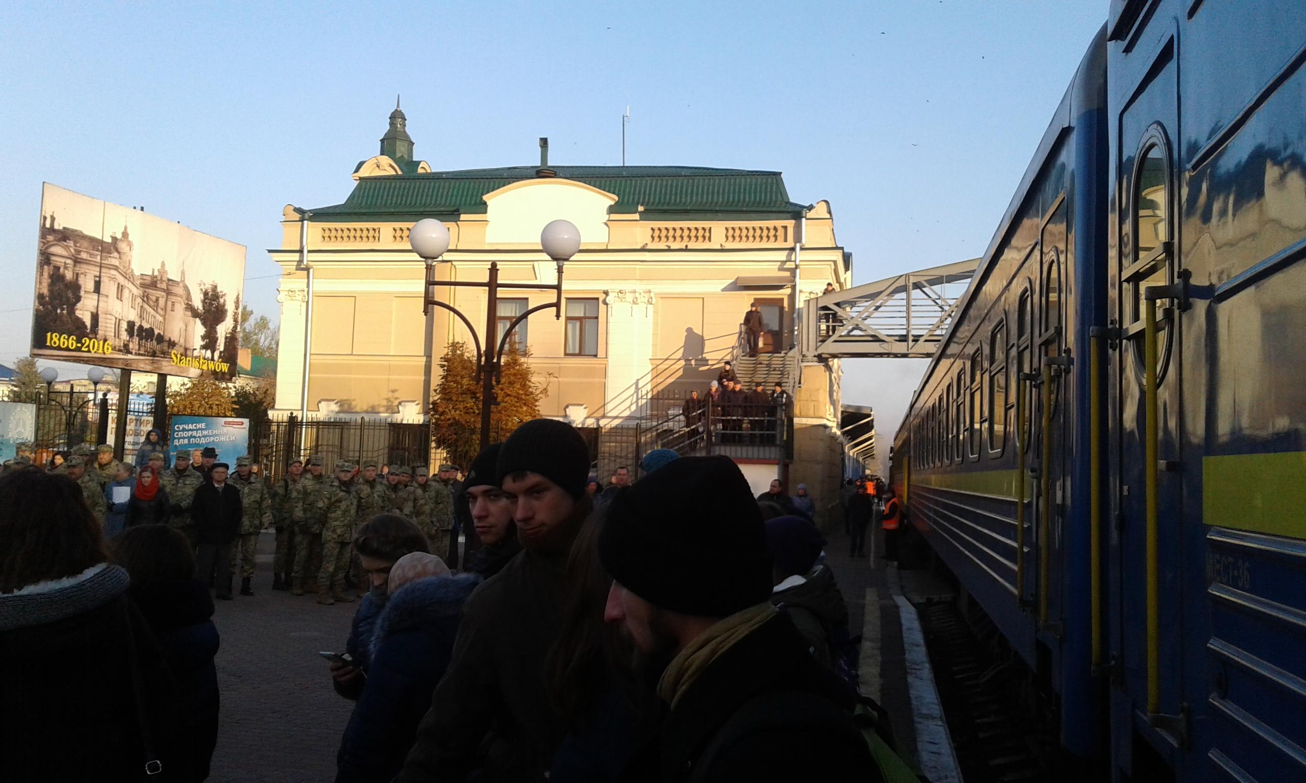 Именно такими словами нас встретили на вокзале глава города и представитель облгосадминистрации. Пожалуй, впервые за поездку поезда единения «Труханівська січ» на перрон вышли и город, и область.