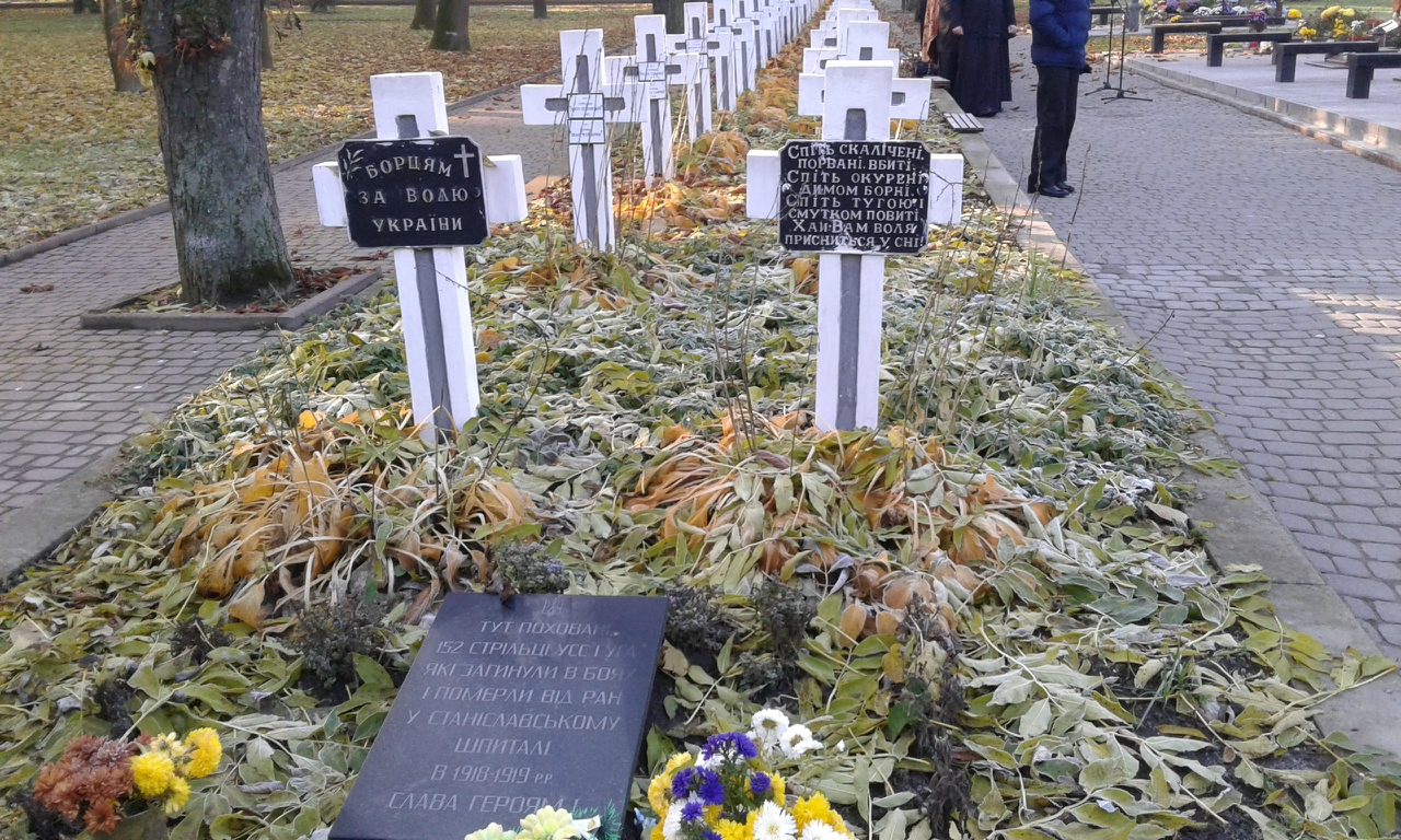 По традиции, мы сразу же отправились к местам захоронения воинов, погибшим за свободу Украины. В Ивано-Франковске в центре города есть прекрасный мемориальный комплекс, где мы почтили память «борцам за волю України» - здесь захоронены 152 сечевых стрельца, - героя Небесной сотни и воинов, погибших во время войны на востоке Украины.