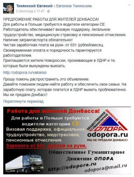 В «ДНР» распространяются объявления о работе в Польше. Жителей "республики" соблазняют высокими зарплатами.