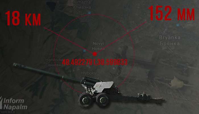 Сопоставляя сводки ВСУ из зоны АТО с интерактивной картой обстрелов украинских позиций InfoLight, установлено, что пятого ноября, в 19:20, 20:40 и 21:10, оккупанты обстреляли Новозвановку из пушек с калибром именно 152 мм.