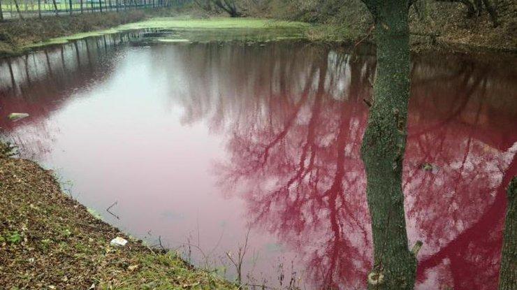 У Сумах в дитячому парку "Казка" озеро з незрозумілих причин перетворилося в рожеву калюжу.