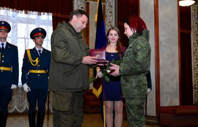 На празднование прибыл и главарь боевиков «ДНР» Александр Захарченко, который раздает подельникам награды.