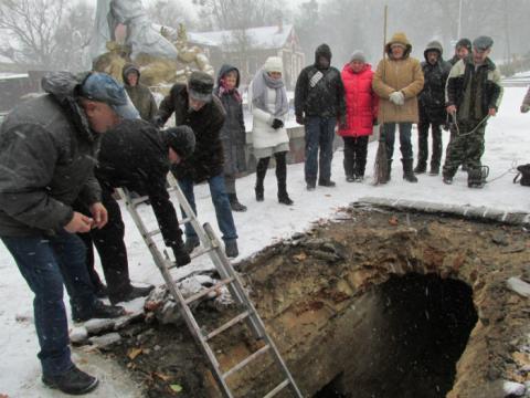 Коли будівельники розібрали сміття і будівельні відходи на місці провалу, то їхнім очам відкрилися капітально влаштовані підземні ходи, що ведуть від місця провалу на всі чотири боки.