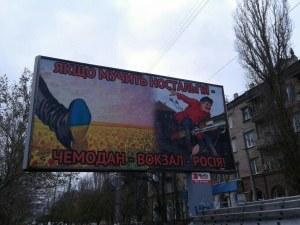 Херсонцы сделали сепаратистам красочный "подарок". На улицах города появились патриотические баннеры, гласящие "Если мучит ностальгия – чемодан, вокзал, Россия!"