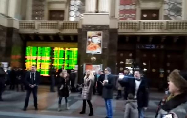 На ж/д вокзале в Киеве люди поддержали песенный флешмоб и исполнили песню "Солнечный круг".