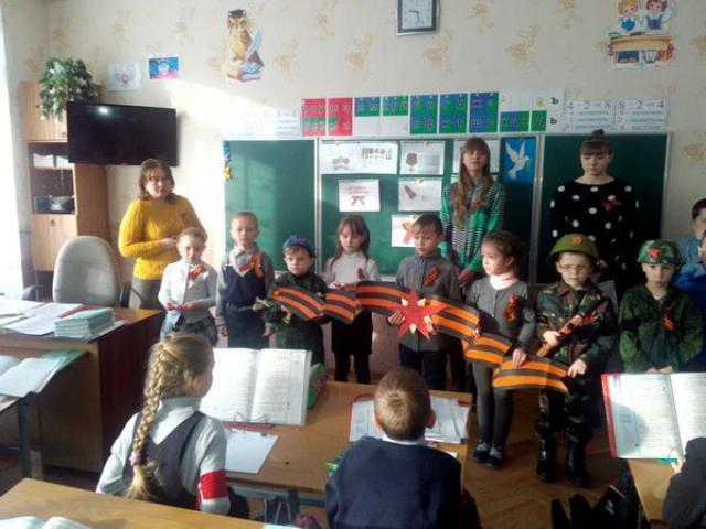Детей, проживающих в оккупированных городах Донецкой области заставили праздновать «день георгиевской ленты». Провести «праздники» прежде всего приказали в учебных заведениях.