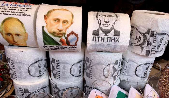 На ярмарке во Львове повсюду маячит лицо президента РФ Владимира Путина – на туалетной бумаге, ковриках для ног и других товарах. На это внимание обратила журналистка Елена Рыковцева.