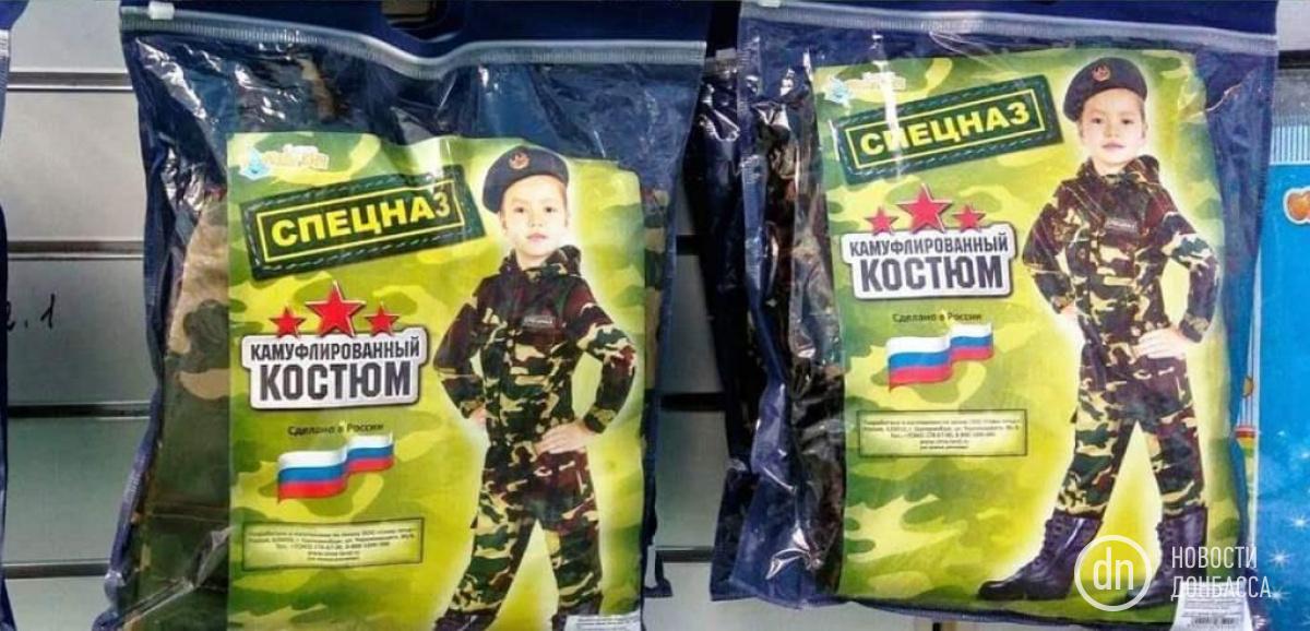 В одном из гипермаркетов оккупированной Макеевки накануне новогодних праздников продают детские камуфлированные костюмы «Спецназ», изготовленные в России.