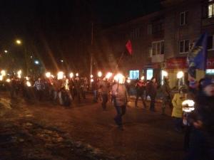 В Твиттере на странице города появляются фотографии с шествия. На них видно, что активисты поджигают факелы и проходят по улицам города, скандируя патриотические речевки и слоганы.