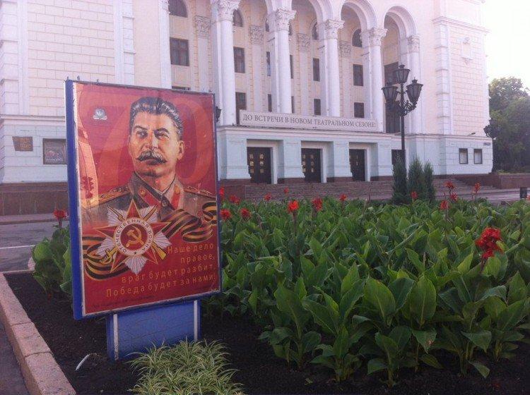 Но давайте опять о красивом. Год назад всех предпринимателей заставили повесить флаги. Ну как заставили, просто попросили, но большинство возражать не решилось. Хотя я сомневаюсь, что владельцев тех магазинов, где флаги до сих пор не висят, всех поголовно забрали "на подвал". Просто у дончан давно такая традиция, если Партия регионов чего-то просит (а большинство "днрвских" чиновников среднего и низшего звена – это именно она, родная), то лучше ей дать. И если раньше не сильно пробовали сопротивляться, то теперь и подавно.