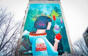 Накануне наступления Нового года художники закончили работу над муралом на доме 23а, расположенного по Шоссе строителей в Северодонецке.