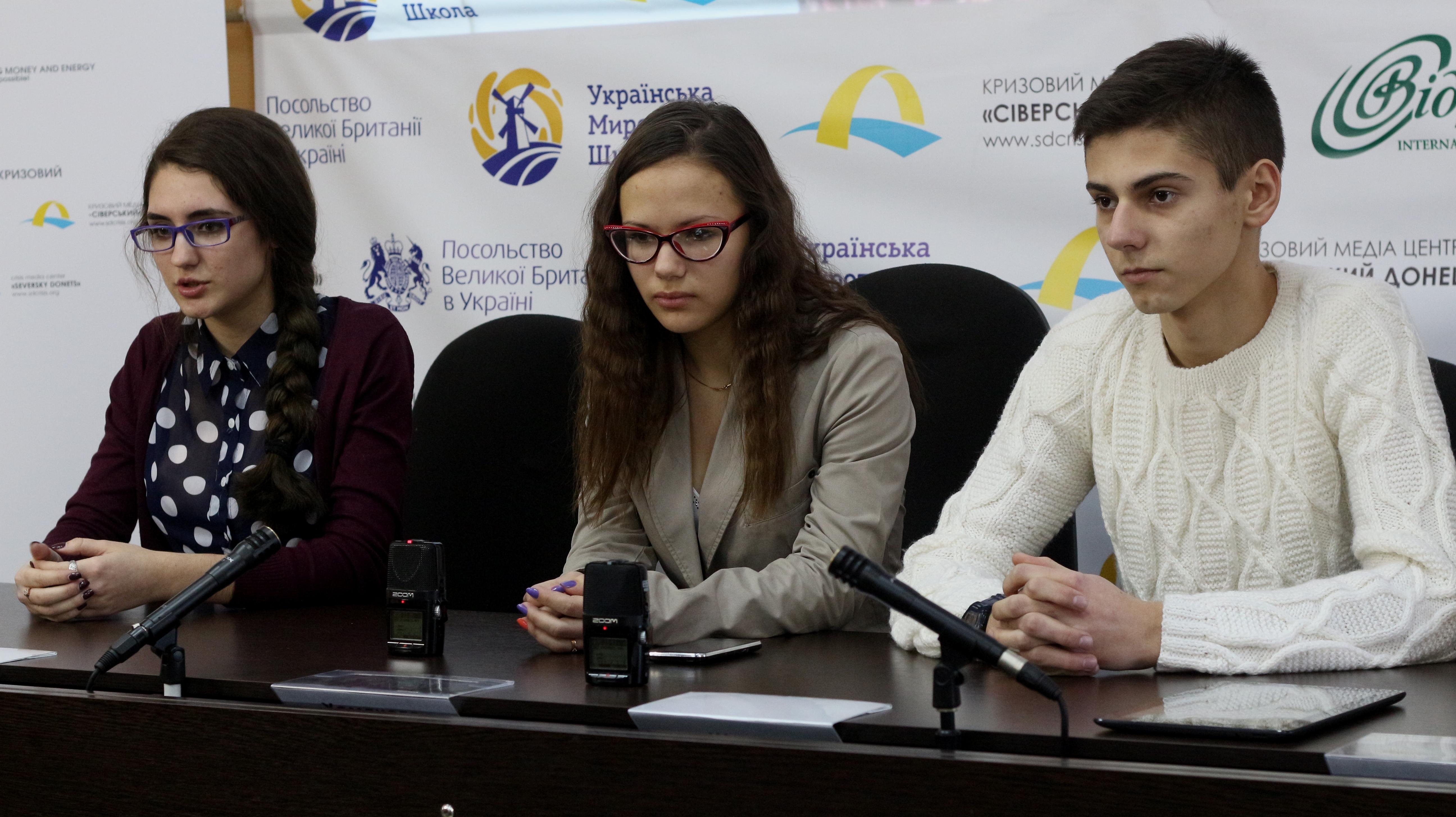 В медиа-центре «Северский Донец» прошла пресс-конференция творческого коллектива документального театра «Переселенец». Помимо художественного руководителя театра Георга Жено, второго режиссера Альберта Сардаряна, драматурга Наталии Ворожбит и художницы Марии Хомяковой в ней приняли участие так же актеры – ученики школы No2 города Счастье и дислоцировавшиеся там военные, которые поделились своим первым опытом в документальном спектакле.